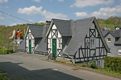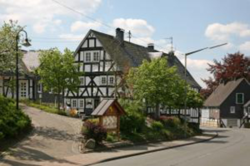 ...so lautet das Motto auf den Ortseingangssteinen. Vom Ortszentrum ausgehend zieht sich die Besiedlung an den Bächen Dirlenbach, Uebach und Fischbach entlang bis an den Rand des Giebelwaldes. Die hügelige Topografie lässt kaum einen entspannten Weg ins Ortszentrum zu, aber so gibt es beim Einkauf kostenlos eine Portion Fitness dazu.